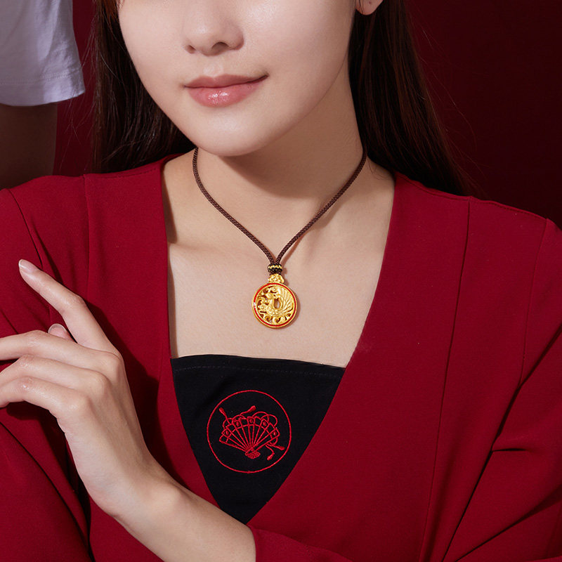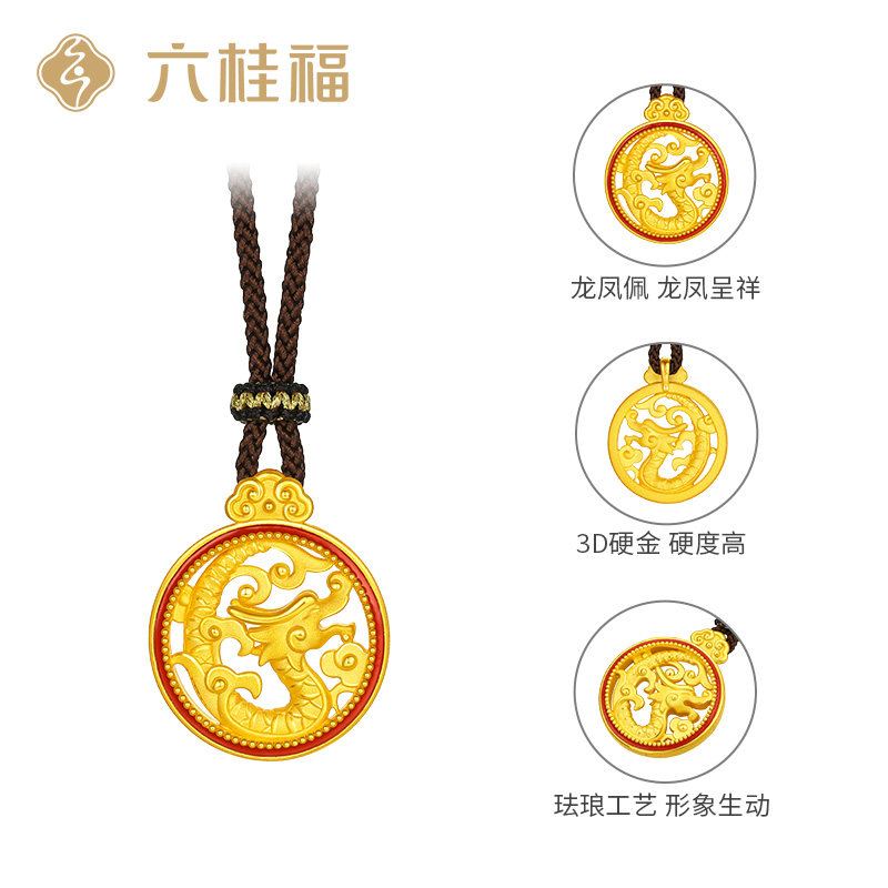 Liuguifu jewelry gold dragon and phoenix Chengxiang couple pendant 3D hard gold foot gold phoenix necklace dragon pendant for men and women