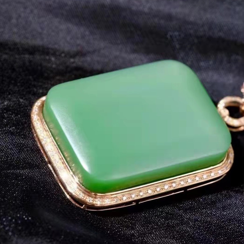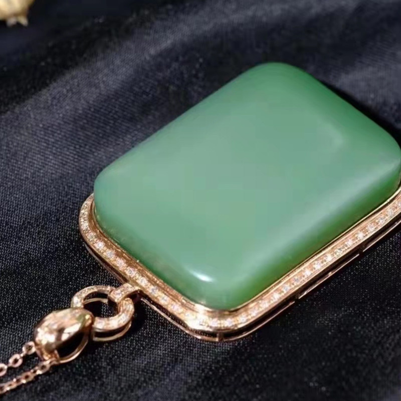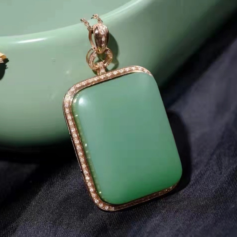Hawa Tian Yu professional live broadcast 18 K gold inlaid jade powder green without accrued pendant jade fine