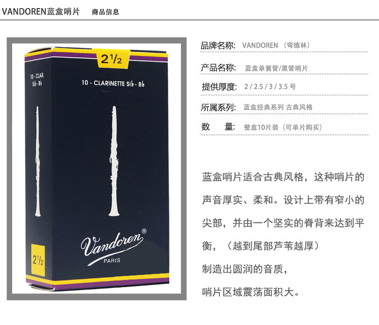 Vandoren Bendlin reed blue box black tube clarinet reed B-tune reed imported from France 2 53 0