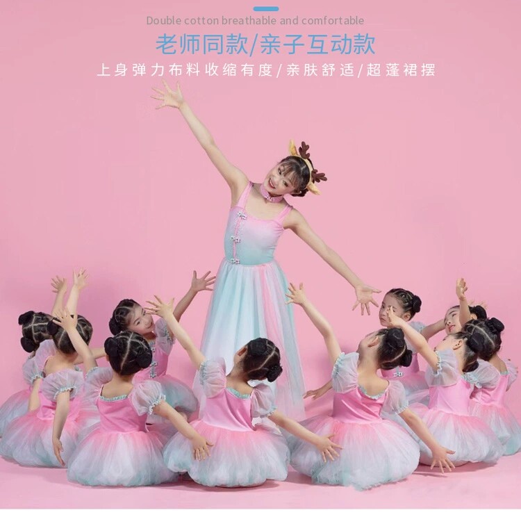 Girl's cute princess fluffy dress Yunchuan Dancing Peach Sprouts Monoid to serve young children Performance Costume Chorus