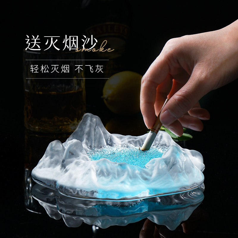 Crystal light extravaganza Ashtray Creative Living Room Office Iceberg Snowy Mountain Home Glass Anti Fly Ash Cigar Cylinder Pendulum
