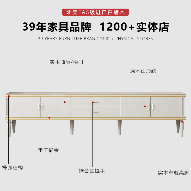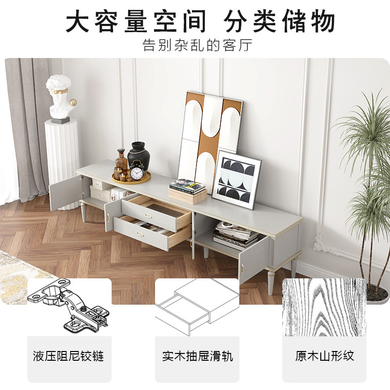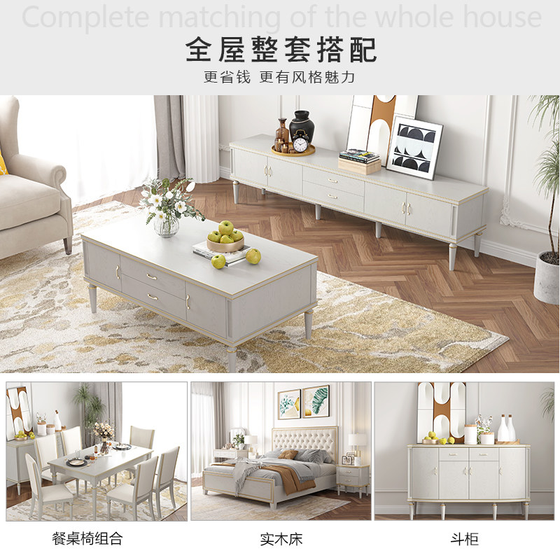 American light luxury full solid wood TV cabinet coffee table combination modern minimalist small apartment home floor cabinet living room storage cabinet