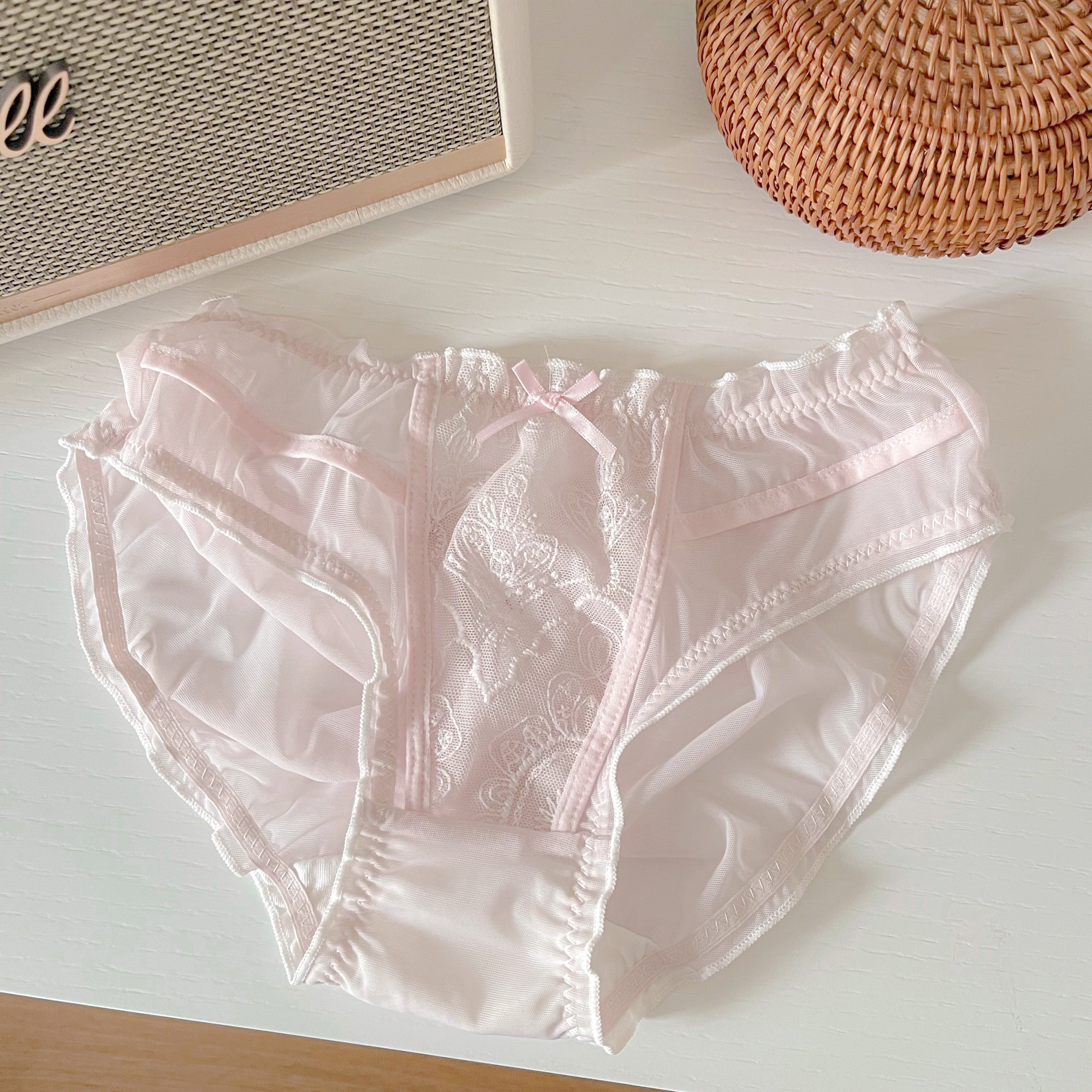 Underwear Feminine Transparent Mesh Yarn Embroidered Patterned Girl Mid-Waist Triangle Pants Slim CUTE BOW TIE SAFETY PANTS NEW