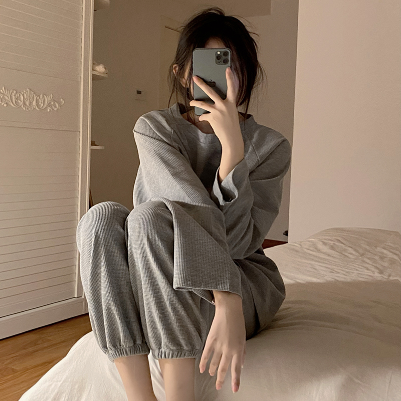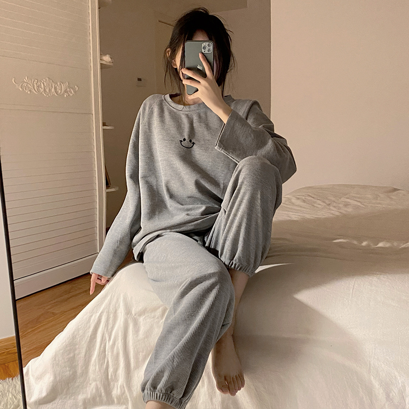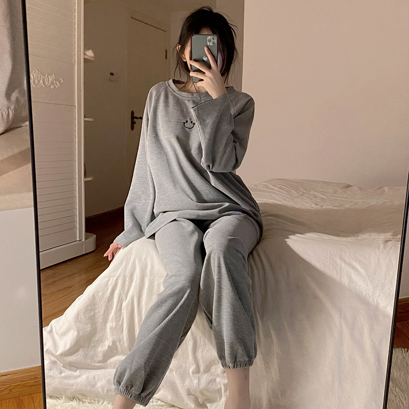 Pure Cotton Pyjamas Lady Spring Autumn Winter Long Sleeves 2023 New Leisure Brief About Big Code Loose Home Suit-Taobao