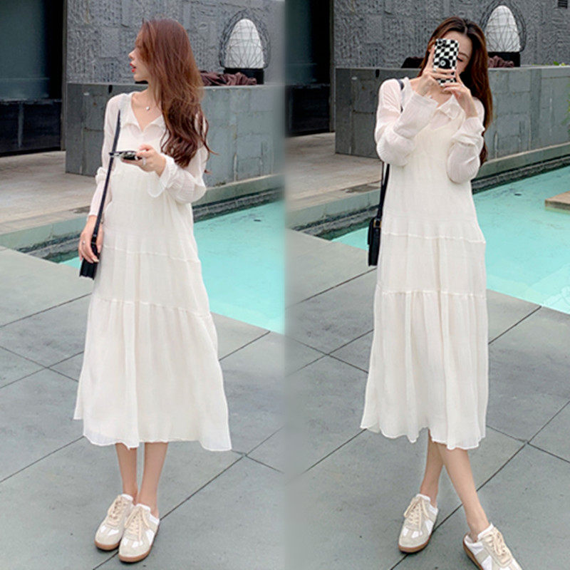 Spring and summer clothes new large size gestation with a long version of the dress and a long version of the ocean pie with a knee-length skirt and a gentle snowstorm spinning skirt