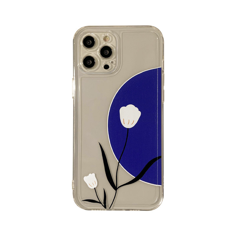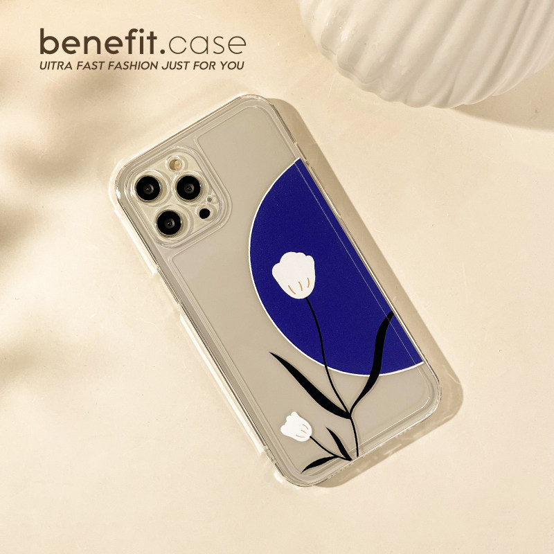 Benefit brief Klein blue white flowers apply Apple 13promax mobile phone protection shell minimalist iphone12mini personality xsmax small crowdxr transparent 8