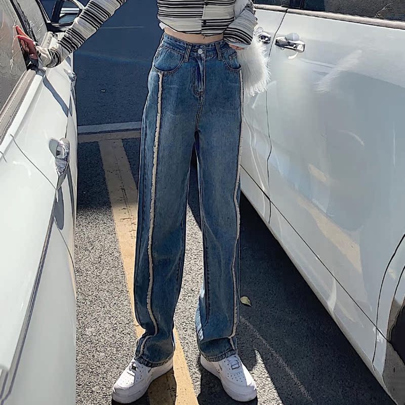 High Waist Jeans Woman Straight Barrel Loose 2022 Spring New Design Sensation Small Crowdside Striped Wide Pants