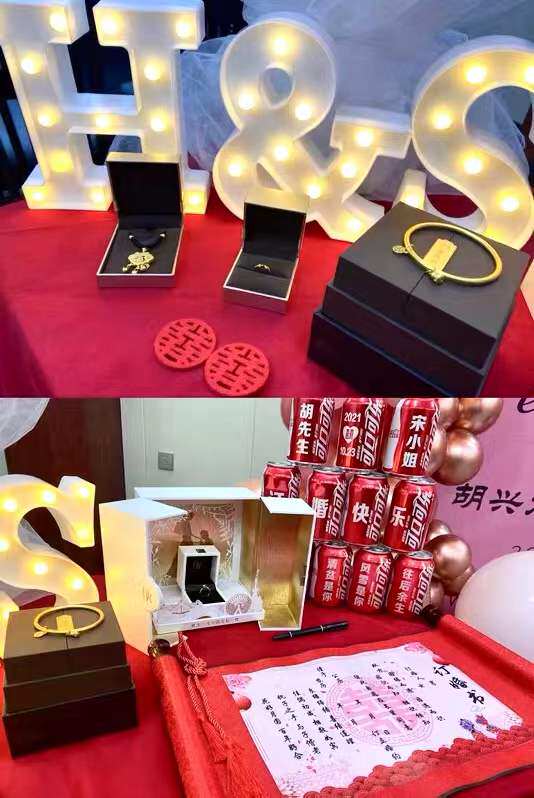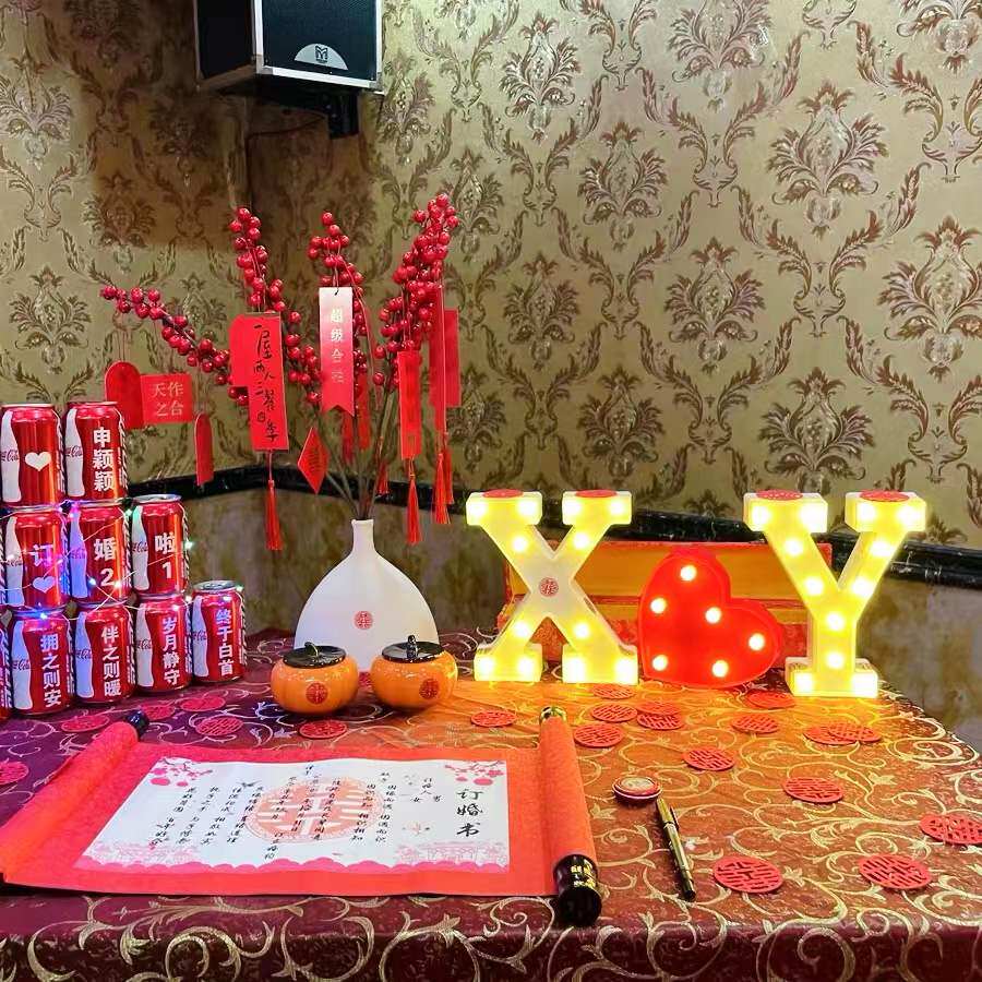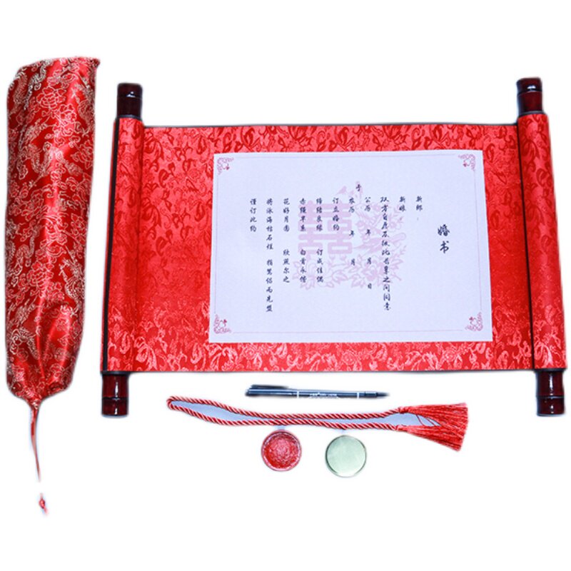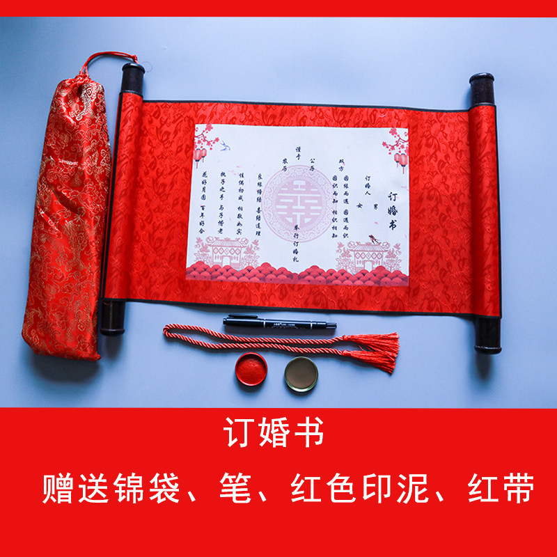 Under the engagement letter, the engagement letter, the marriage letter, the marriage engagement table decoration, the decoration of small objects, the arrangement of Chinese style handwritten Chinese style engagement