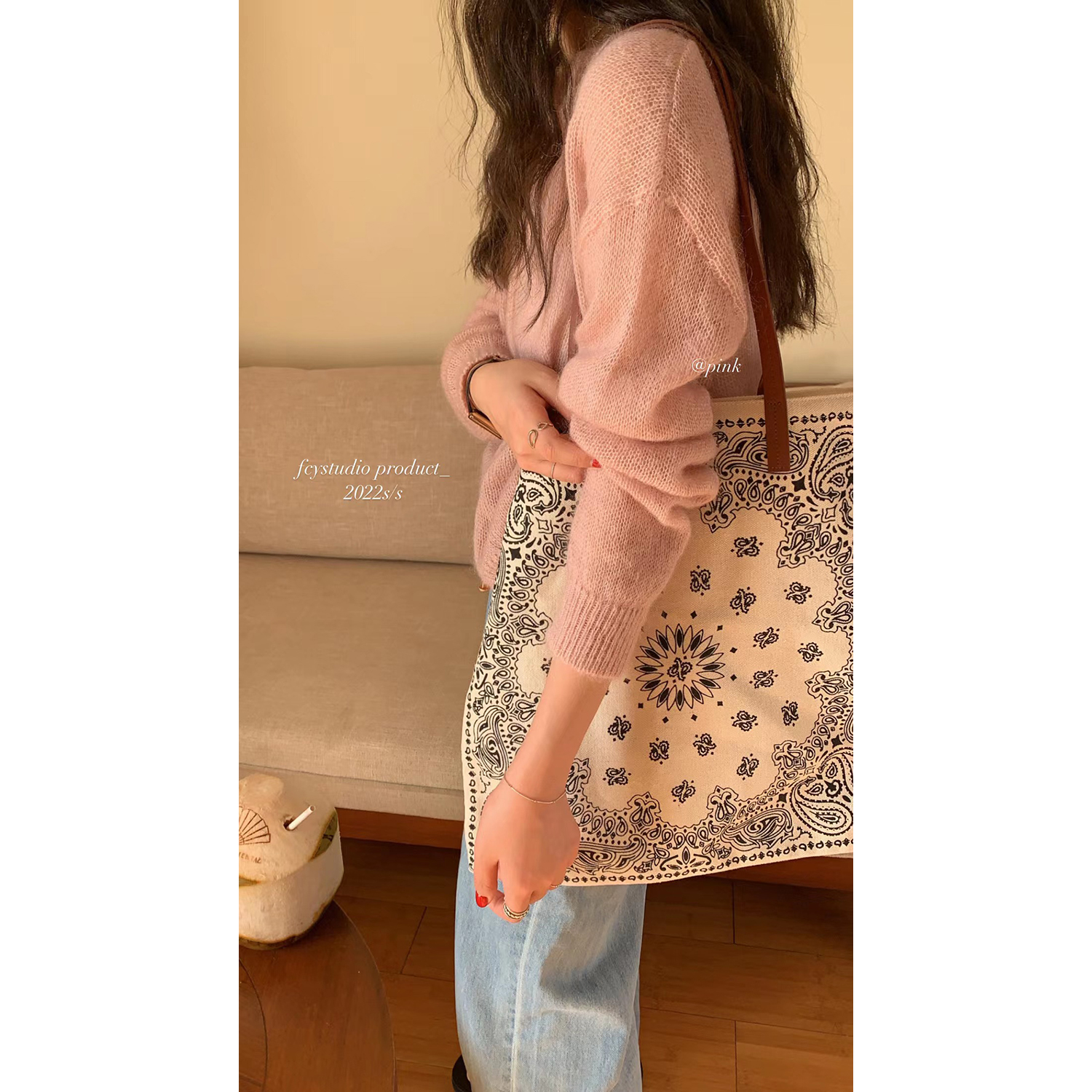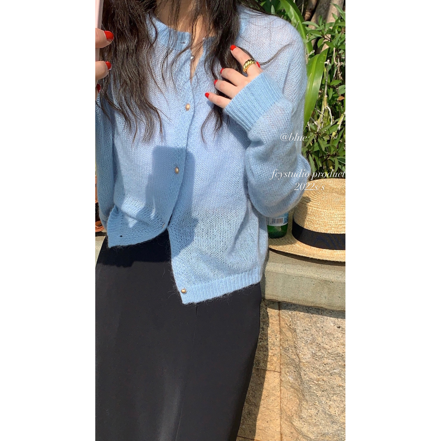 FCY studio pink knit cardigan 2022 design sensation small crowdspring slim cut short 100 hitch