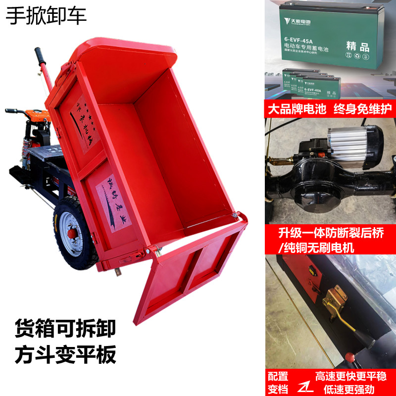 Construction site electric tricycle special dump truck for construction engineering small-scale agricultural breeding with pulling brick pulling mortar load