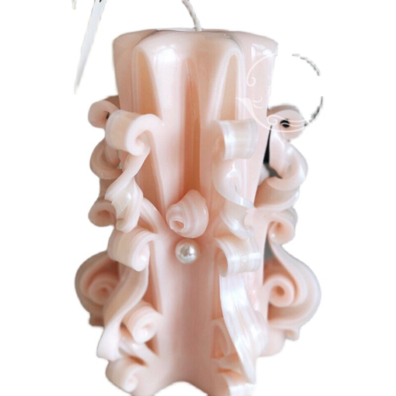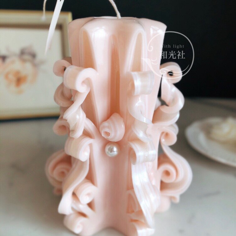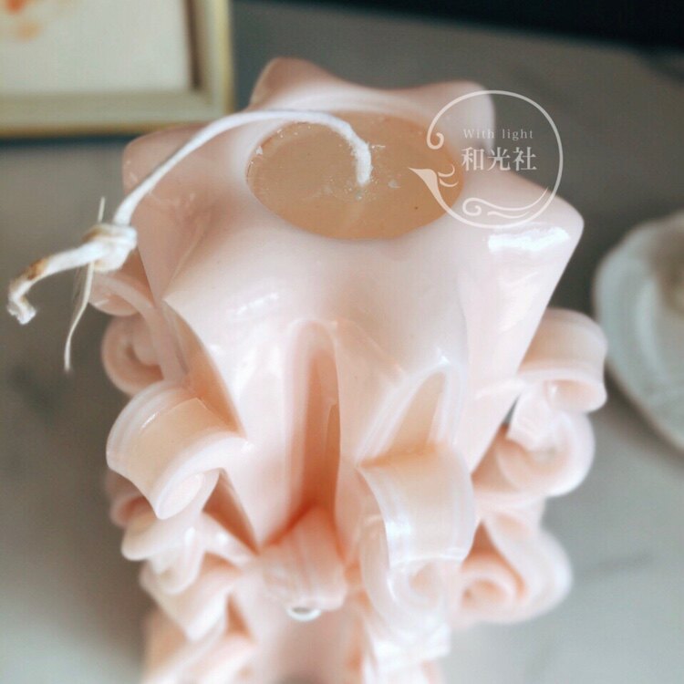 "Evening Sakura" German Craft Carving Candle Pale Pink Festival Gift Large 16cm High