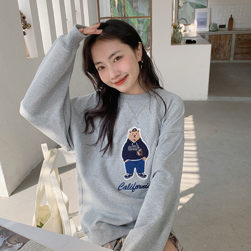 Nalla homemade Pregnant Woman Little Bear Thick Cotton T Round Neckline Trend Spring Autumn ins2022 New Loose Korean Version