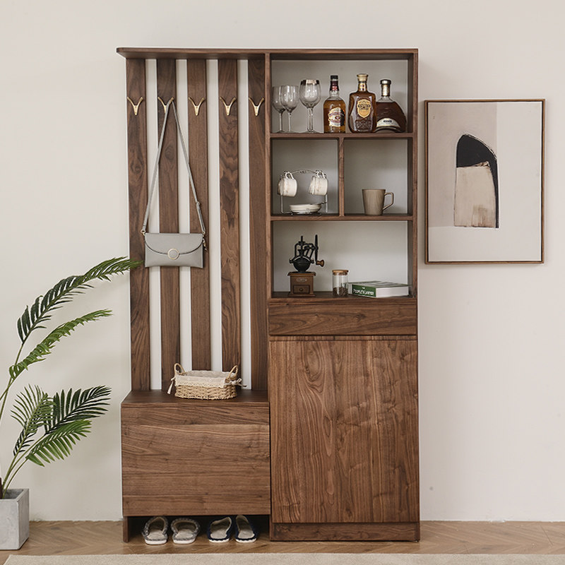 Nordic Solid Wood Genguan Cabinet Door Hall Partition Shoe Cabinet North American Black Walnut Wood Room Hall Cabinet Xuanguan Wine Cabinet Screen Customisation
