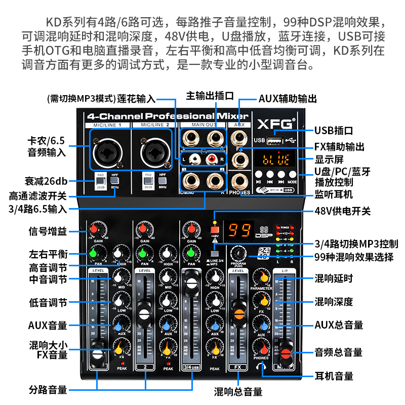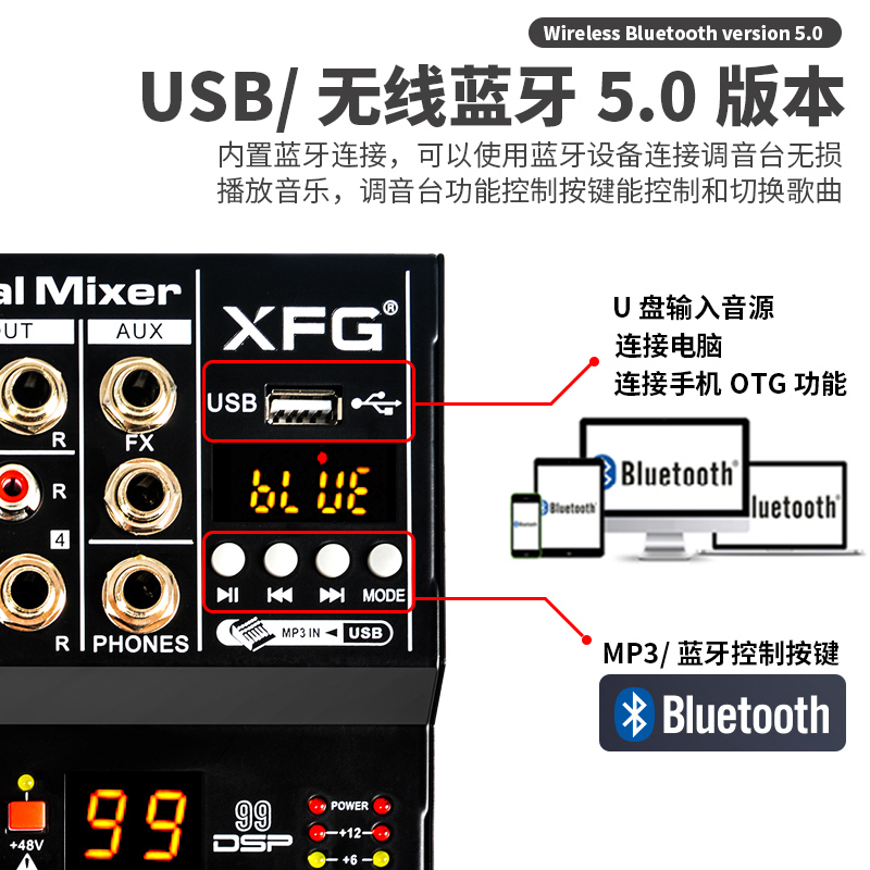 XFG Professional Small Tuning Desk Home KTV Bluetooth DSP Reverberation K Song Mobile Phone Computer Live Recording Mini-Taobao