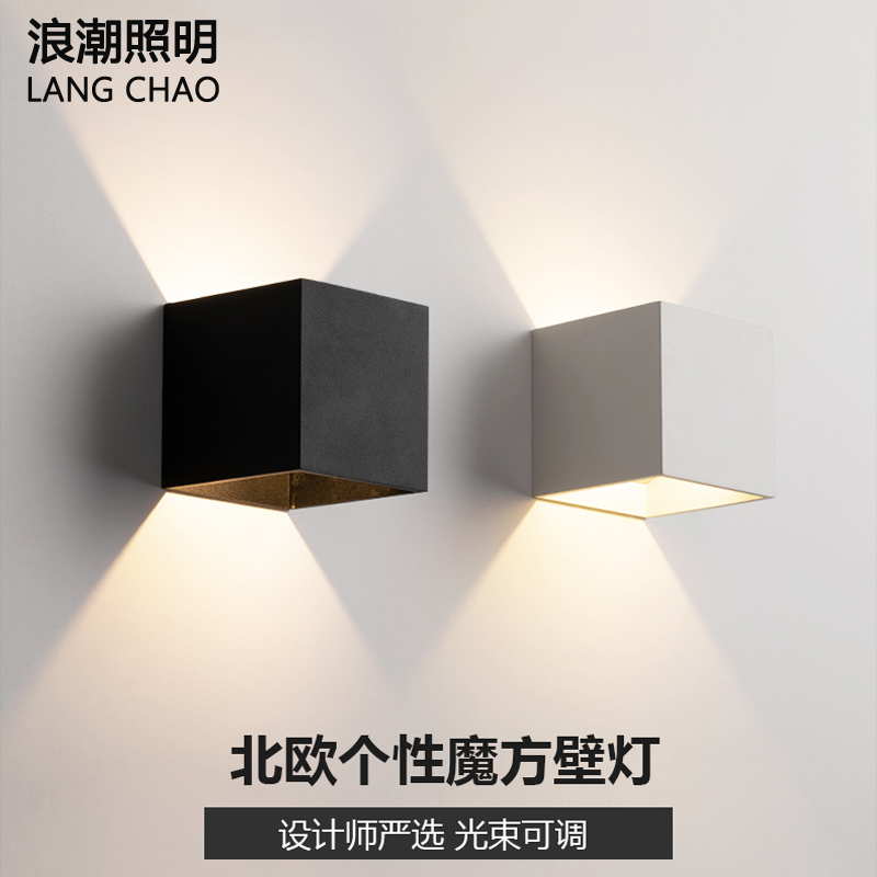 LED wall lamp Nordic cream style bedroom bedside lamp square white living room study background wall personality aisle lamp