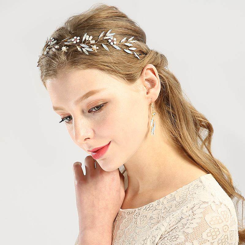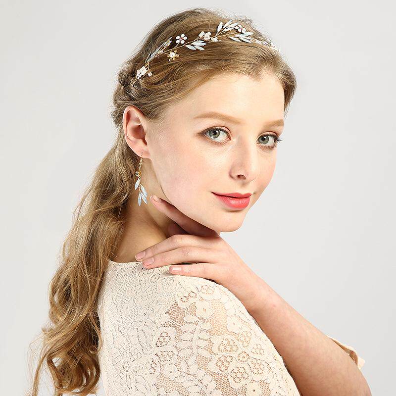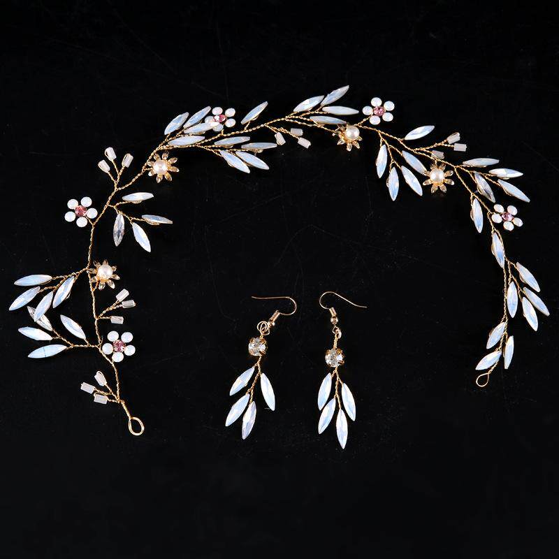 Protein glass headdress gold flowers crystal wedding dress accessories with bride jewelry