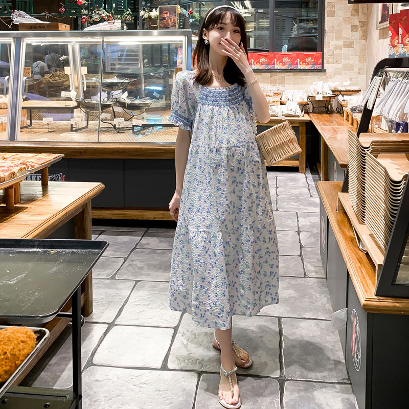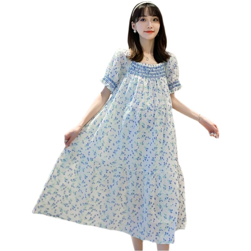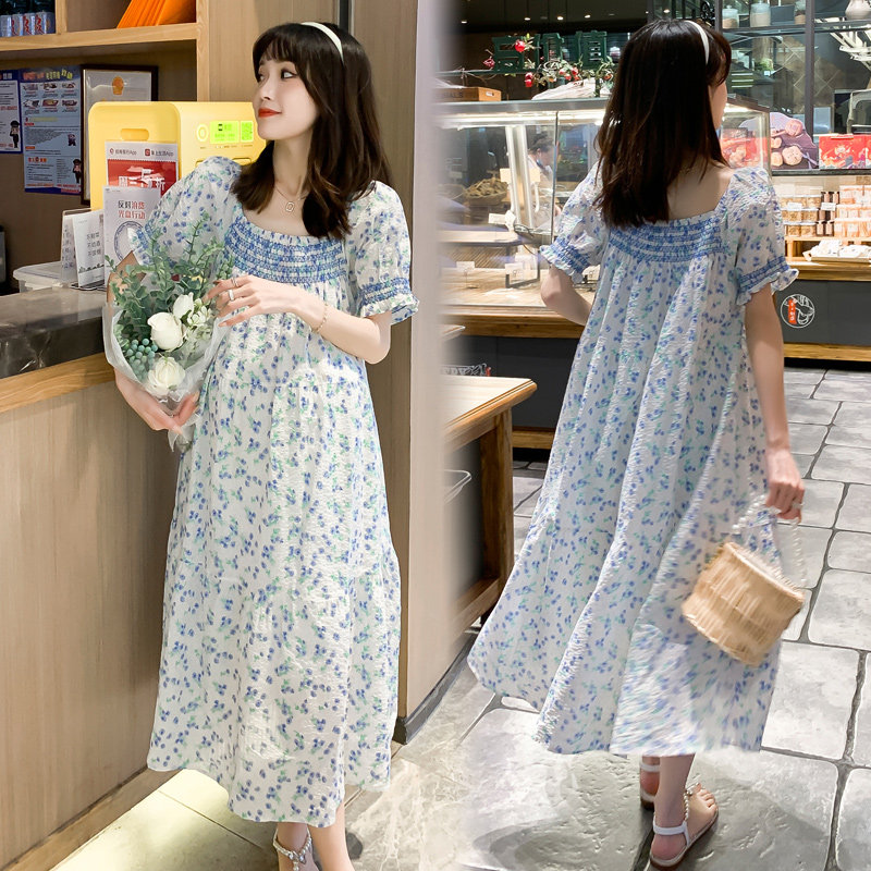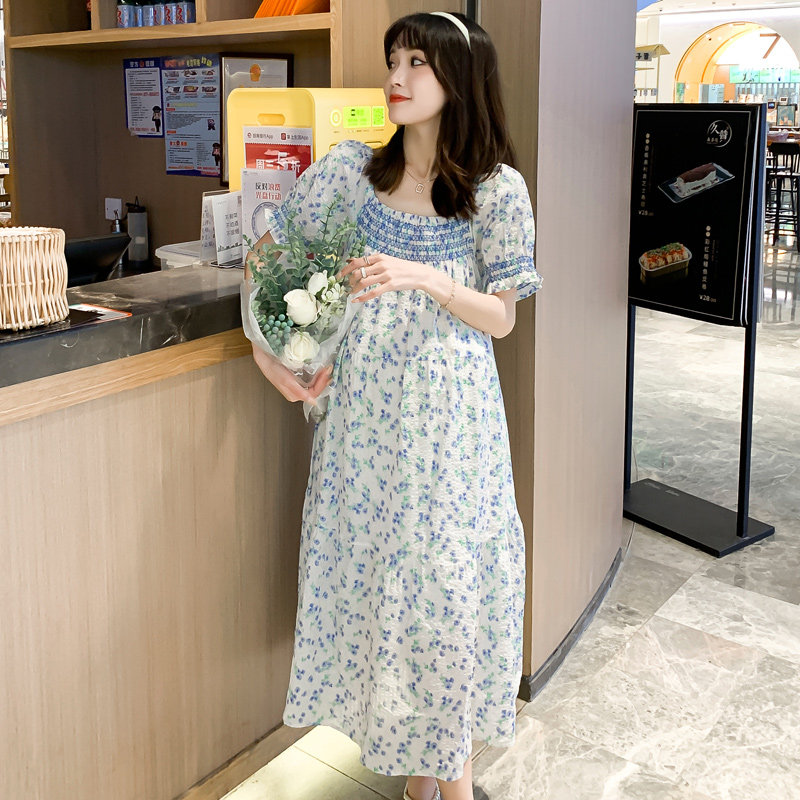 Summer dress the new gestational woman dress sweet and windy and windy with a floral dress for the first spring fields of the spring fields.