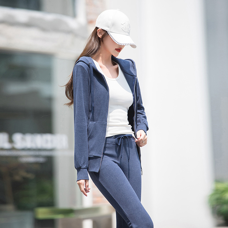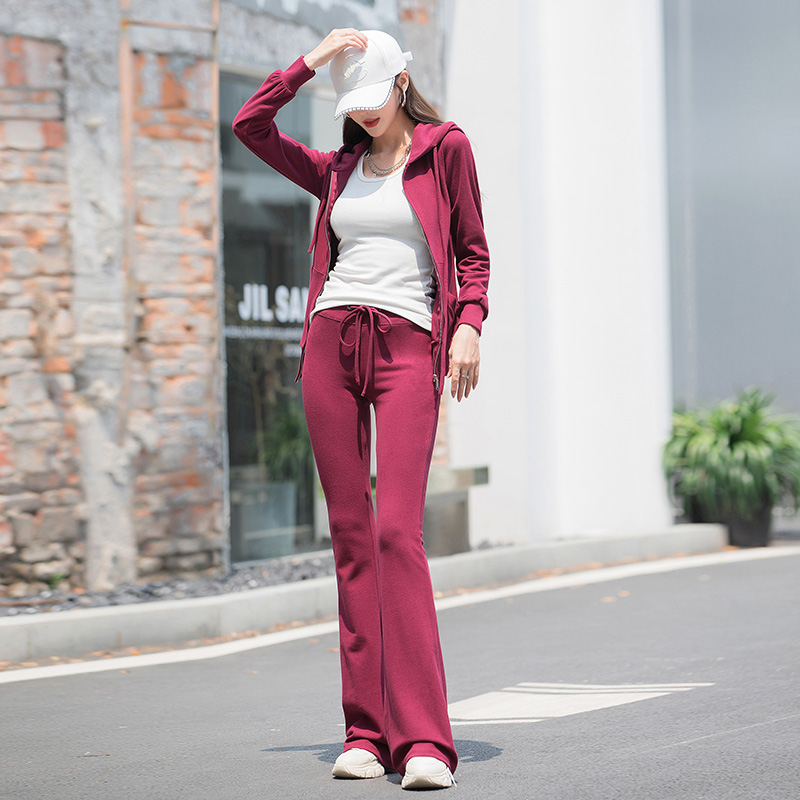 2022 Spring loaded new casual sports suit women's spring autumn season upfront running horn pants vegemon two-piece suit