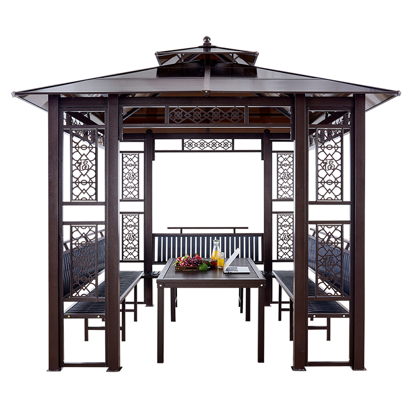 Fuzi Pavilion 3*3m (excluding tables)Fuzi Pavilion 3*3m 2-side seat board 1 table Fuzi Pavilion 3*3m 3-side seat board 1 table Fuzi Pavilion 3*3m 3-side seat board 1 table floor