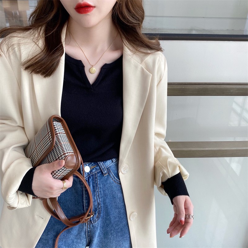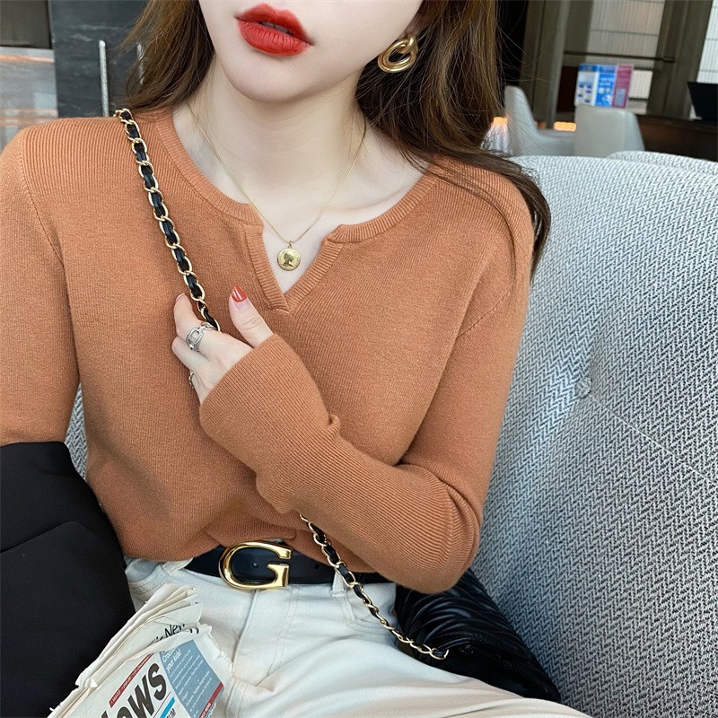 White-knitted sweatshirt female V-neck undershirt 2022 Spring new body sweaters hitch black thin blouses