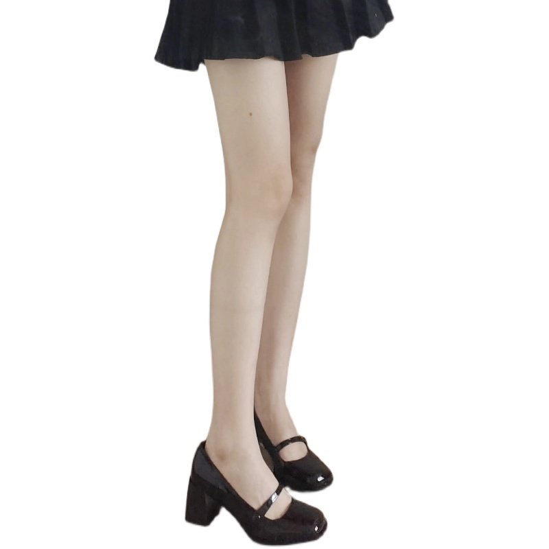 OMG show leg length girl high heels thick heels ~ show high black single shoes Mary Jane shoes small leather shoes