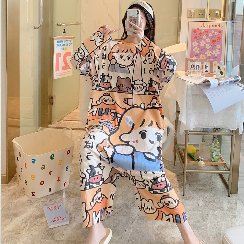 Long Sleeve Sleeping Dress Woman Spring Autumn Pure Cotton 2021 New Autumn cute girl big size easy for pregnant woman to even get a pyjamas