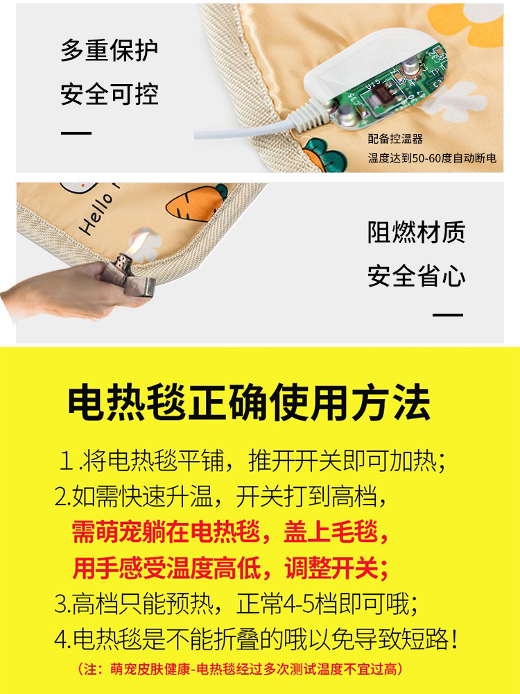 Warm large electric warm cushion ground warm cushion cat cat electric blanket dog heating cushion rechargeable mat fever cushion for lunch break