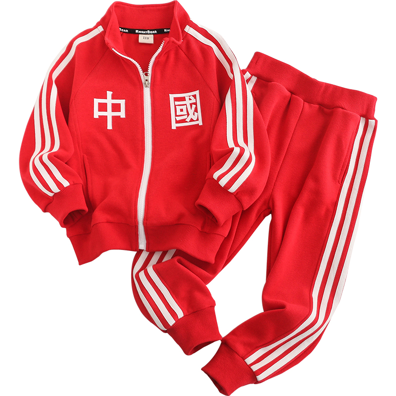 Children's China Red sportswear suit Spring-autumn-style CUHK Boy boy Spring clothing Children's clothing Jacket Tide Girls School Uniform