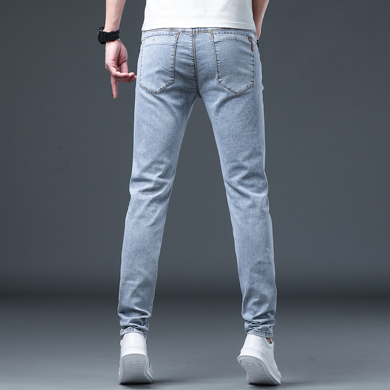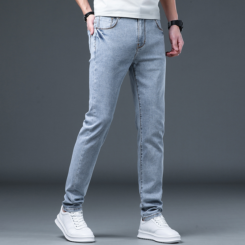 Summer slim fit jeans men light shades slim fit small feet elastic straight cylinder pants male Korean version Trend casual long pants