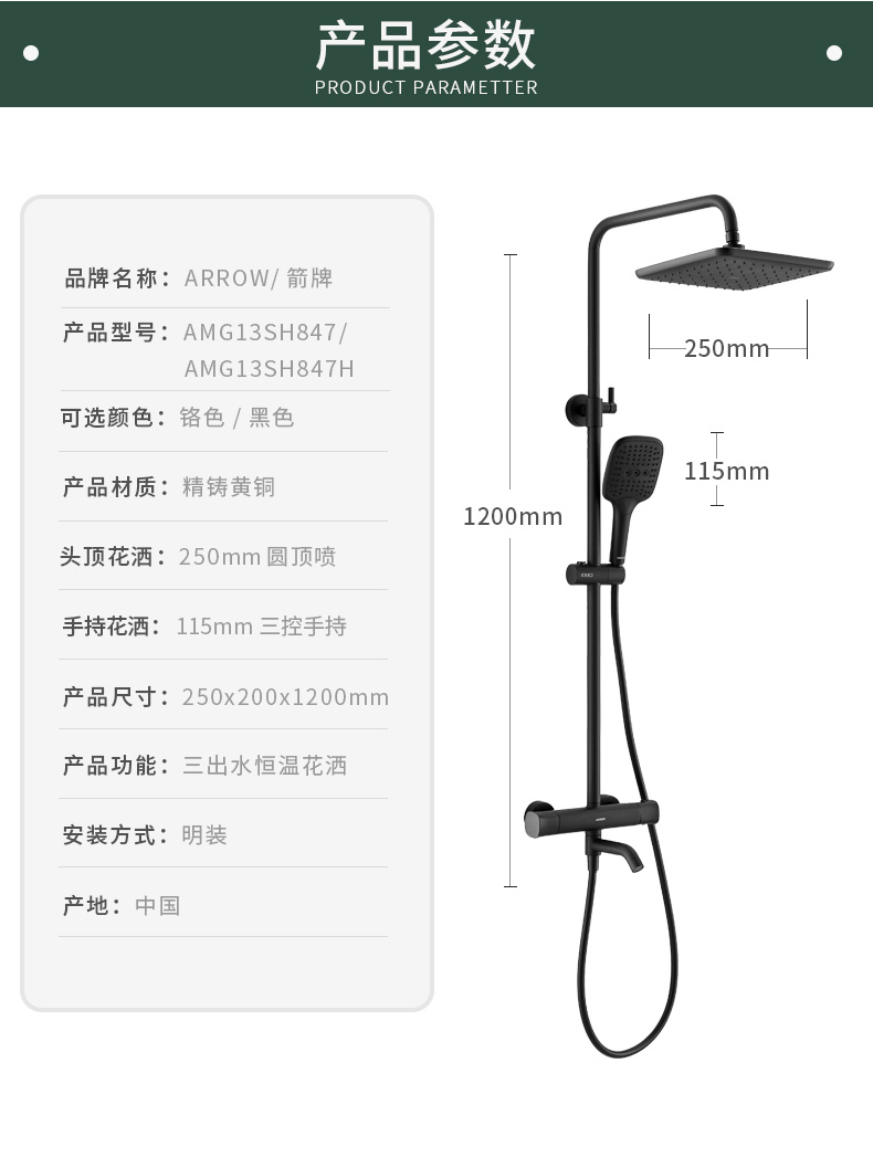 Store Tongan ARROW Arrow Bathroom Thermostatic Shower Shower Kit Copper Thermostatic Tap Booster Shower