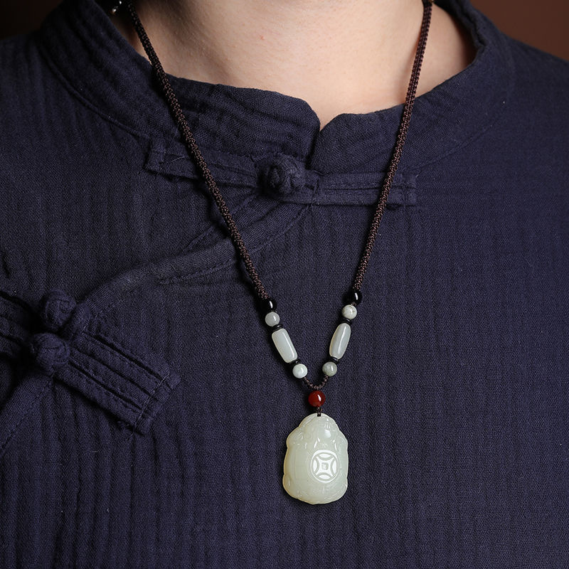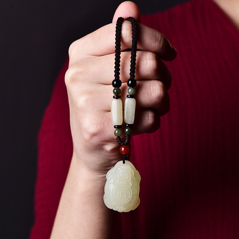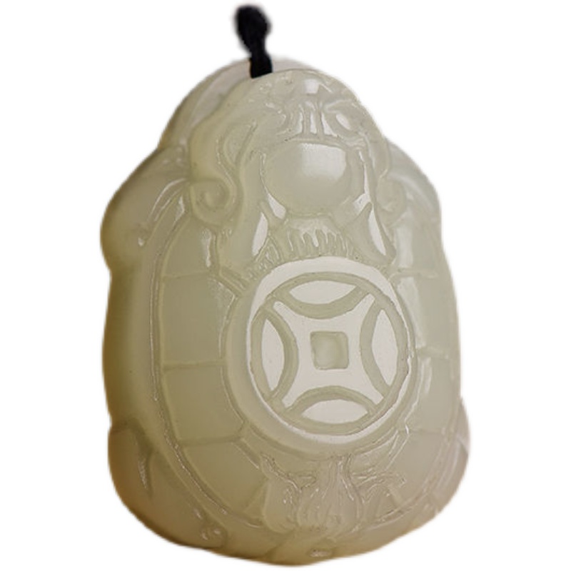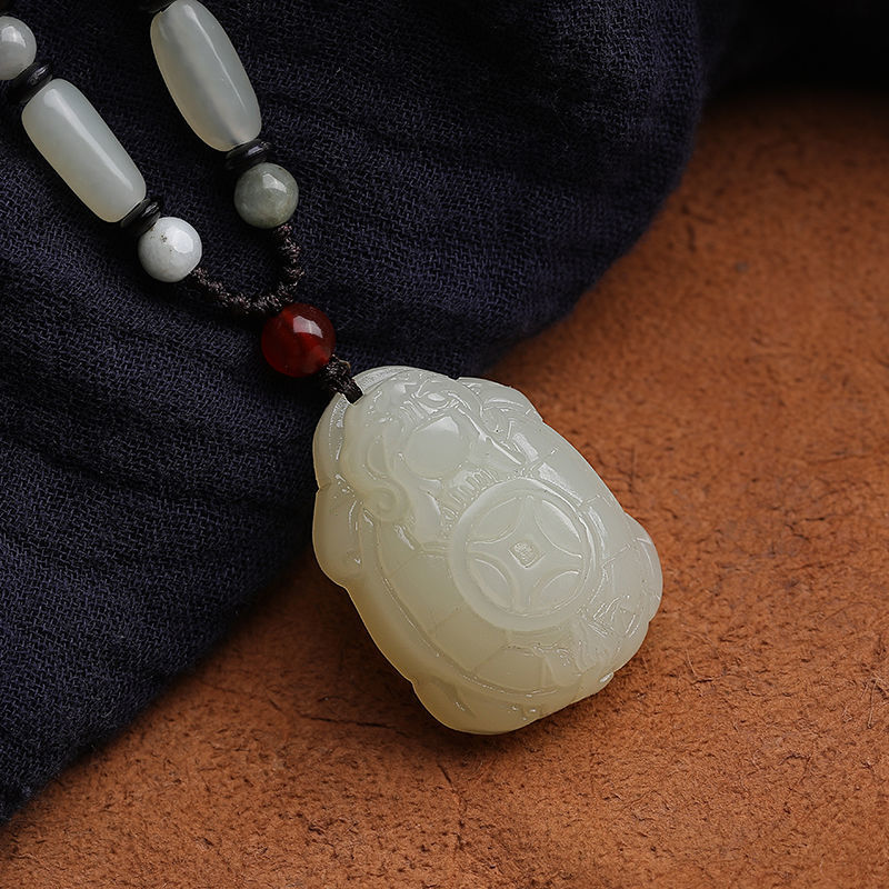 Natural White Jade Dragon Turtle Pendant Sweater Chain Ping An Buckle Female Jade Pendant Jade Pendant Necklace Versatile Ethnic Couples