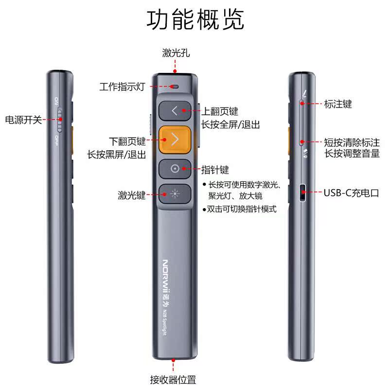 The ino is N28Spotlight lithium electric version digital laser LED LCD screen turning pen slide mouse ppt projection pen