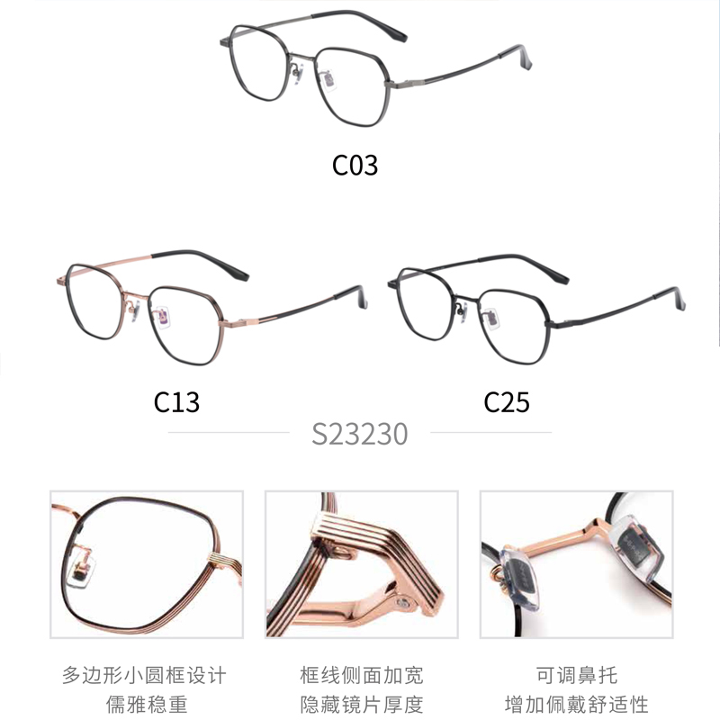 S23230-C03 gun frame painting black S23230-C13 rose gold frame painting black S23230-C25 black frame mirror frame Yivision Road A3 aspherical 1 56 mirror frame