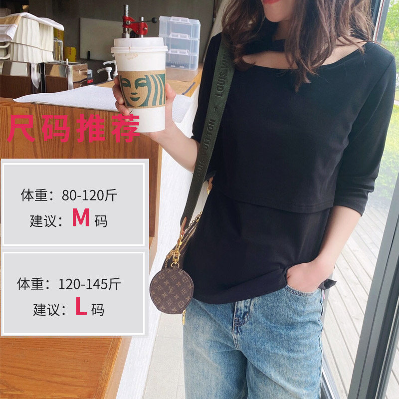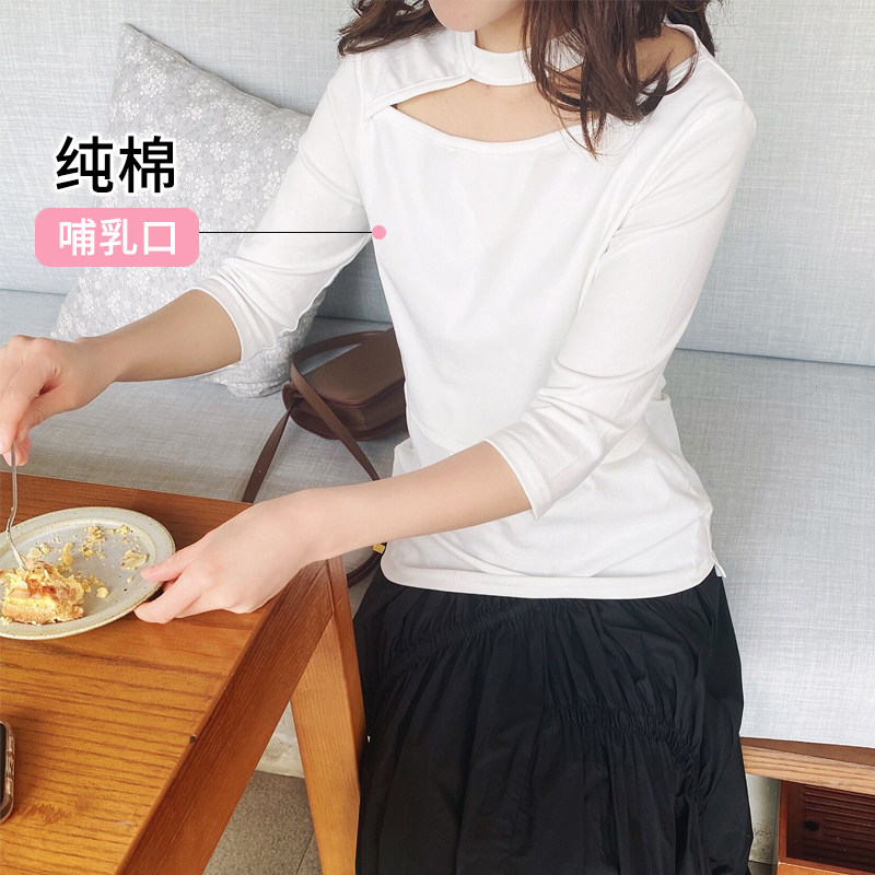 Summer clothing outgoing lactation T-shirt pure cotton short sleeve Korean version hanging neck design lactation blouse for casual beating bottom