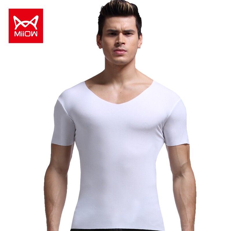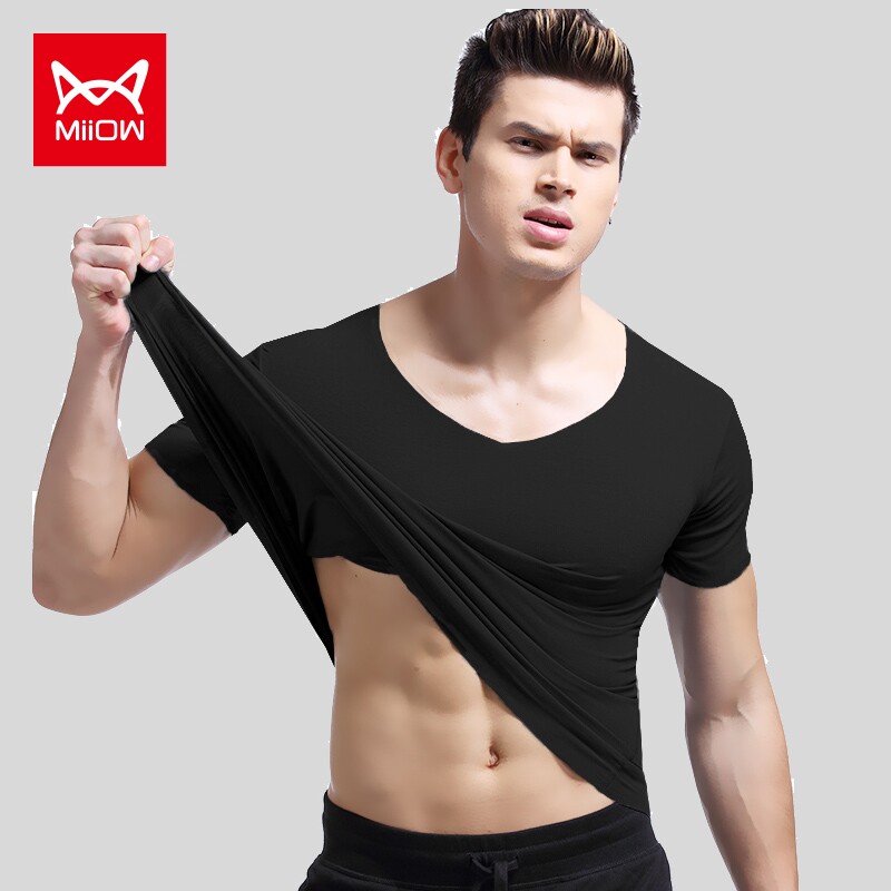 Cat person Modale tight fit half sleeve T-shirt slim fit man No-mark short sleeve T-shirt deep v undershirt for body underwear