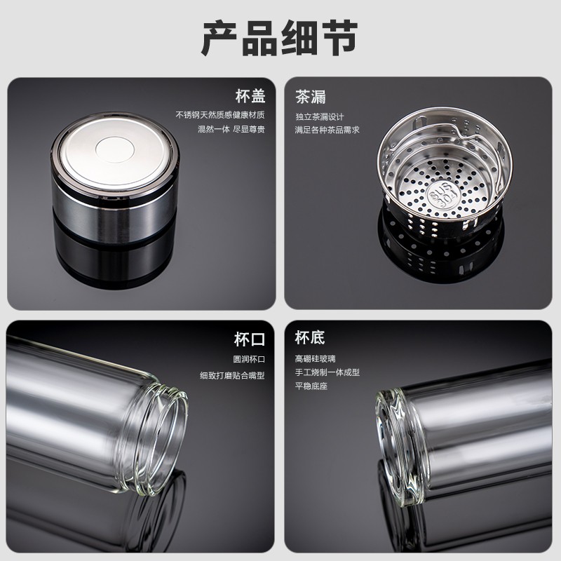 Golden Li glass double layer portable water cup heat resistance filter men and women large capacity Building tea cup custom print logo