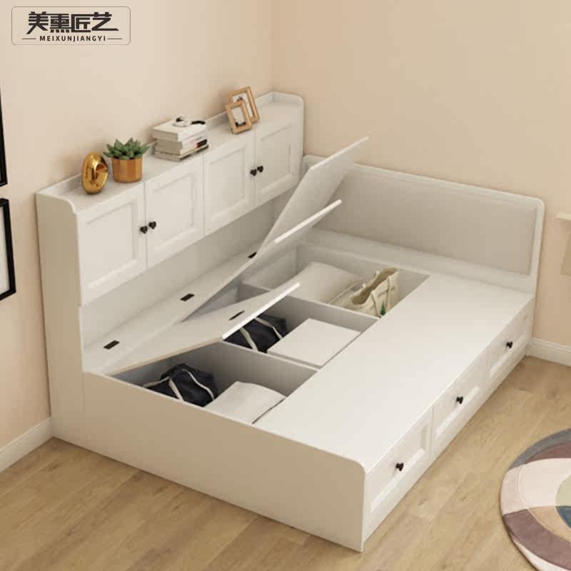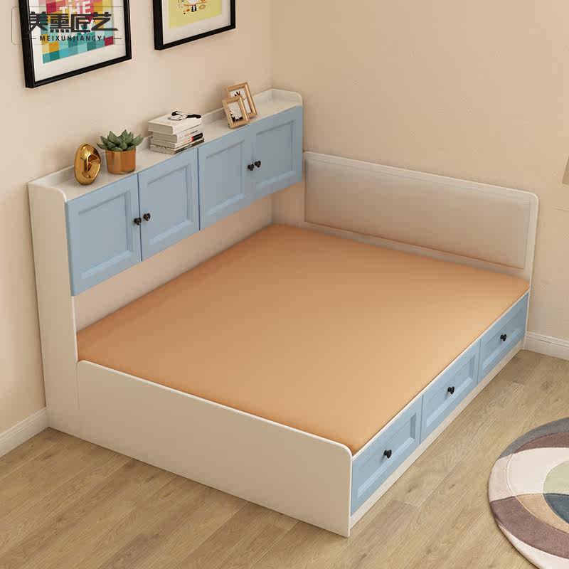 Bay window side bookshelf bed storage tatami high box single bed 1 2 meters small apartment combination bed 1 35 custom
