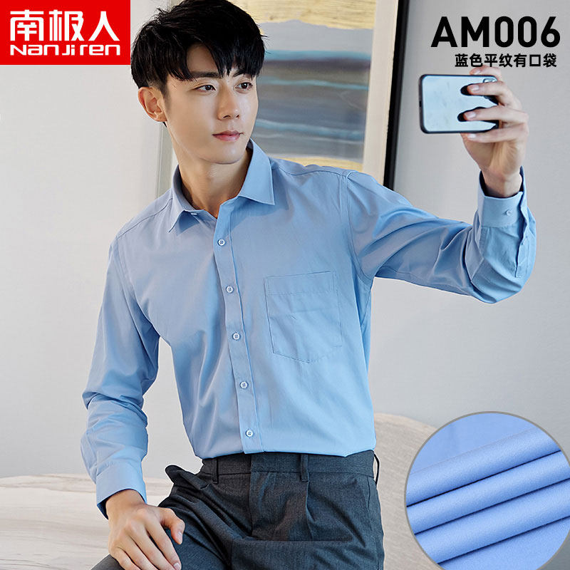Antarctic ice green long-sleeved shirt men's youth business casual work clothes shirt men's solid color work clothes