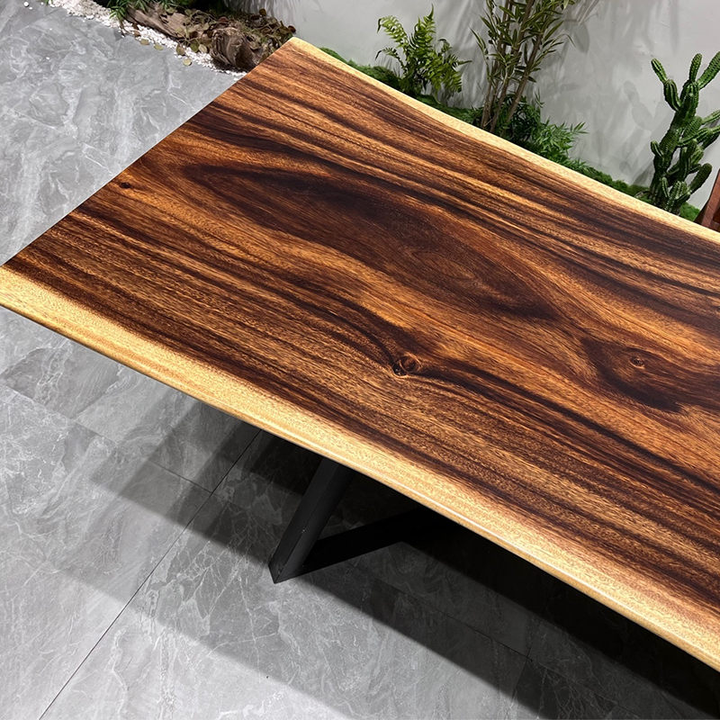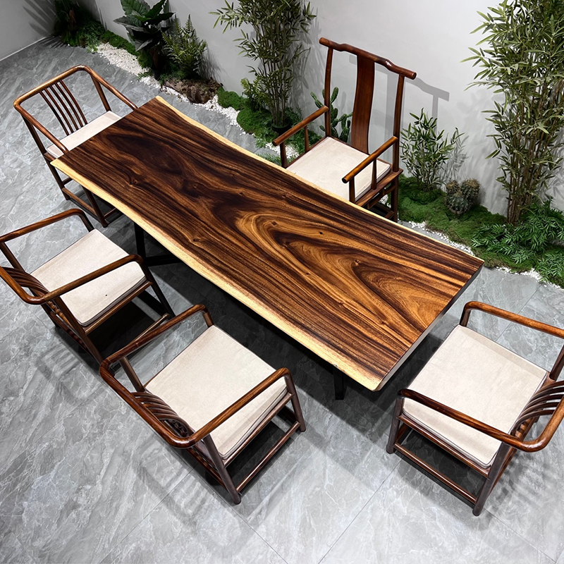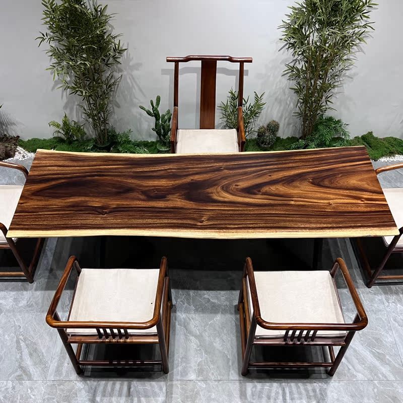 Walnut solid wood large board tea table whole board tea table Okan log dining table desktop boss office desk natural edge
