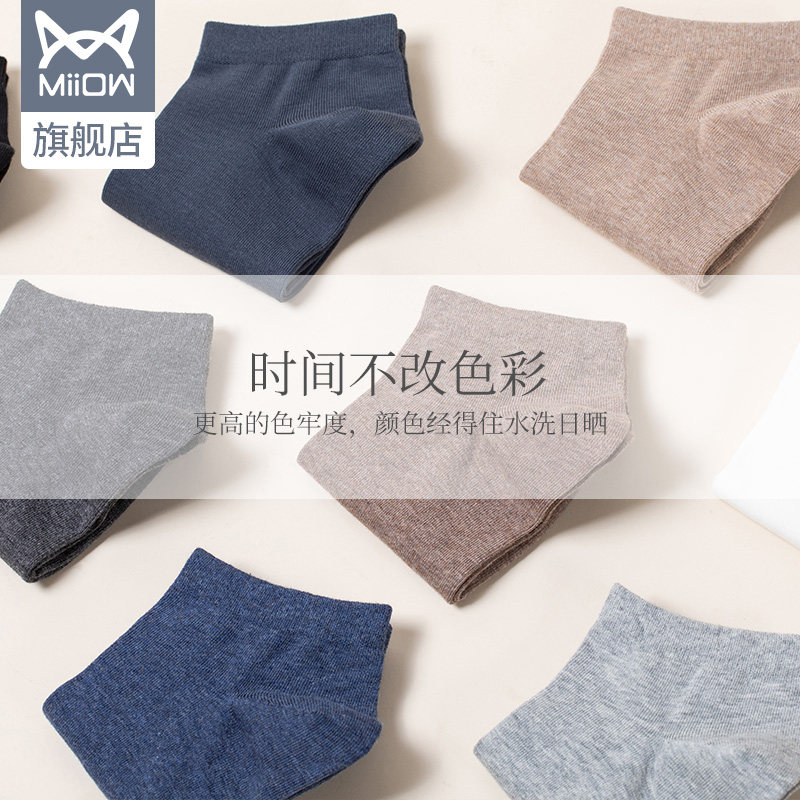 Cat people socks men's pure cotton spring and summer thin black socks ins tide outside wear shallow mouth sports sweat-absorbing breathable invisible socks