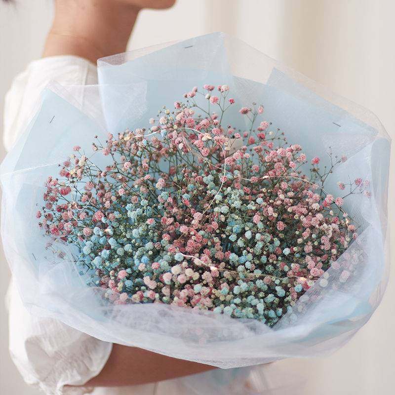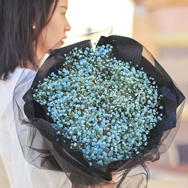 Y011 Blue baby's breath, black paper, black gauze to send lights Y012 Blue baby's breath, blue paper, white yarn to send lights Y013 Blue baby's breath, matte paper, white yarn to send lights Y02 Pink full
