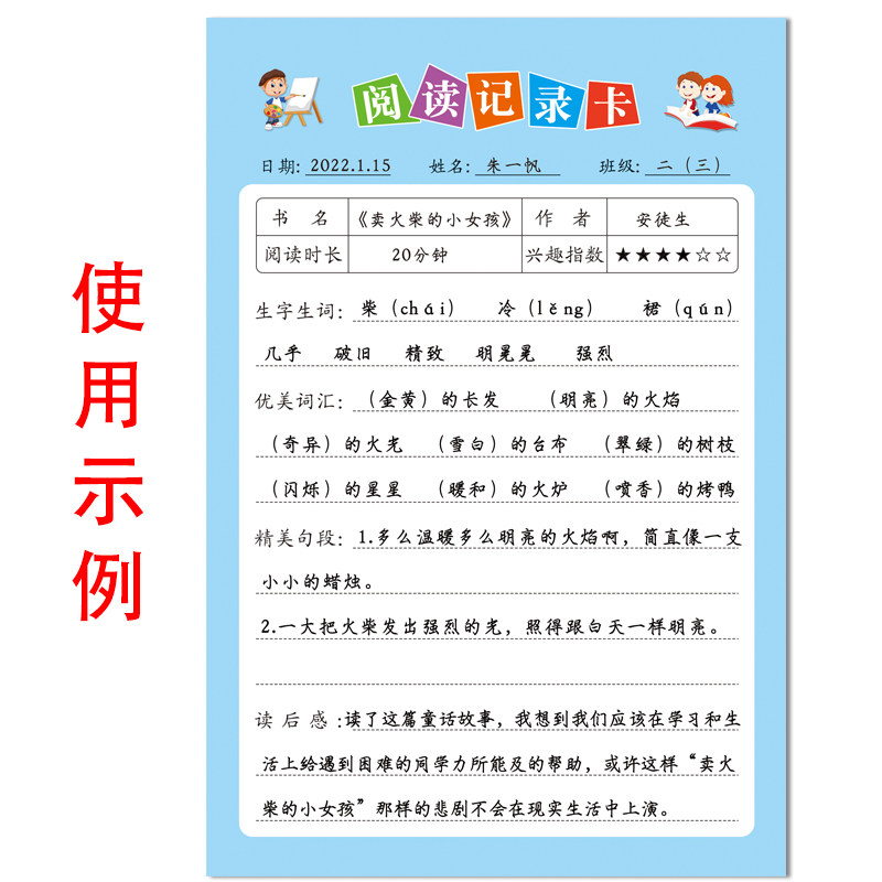 Primary students read record card reading record card reading excerpt card record single 12346th grade reading the accumulated month reading notebook card