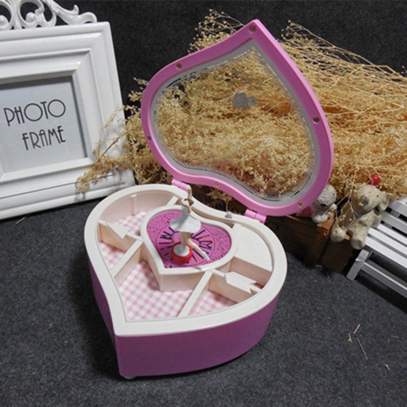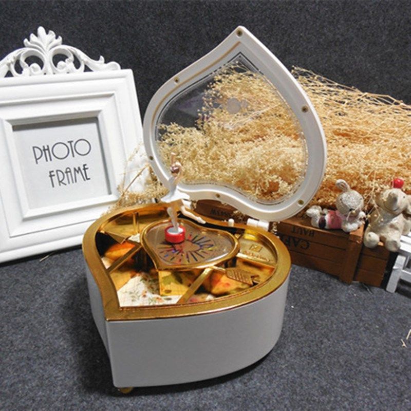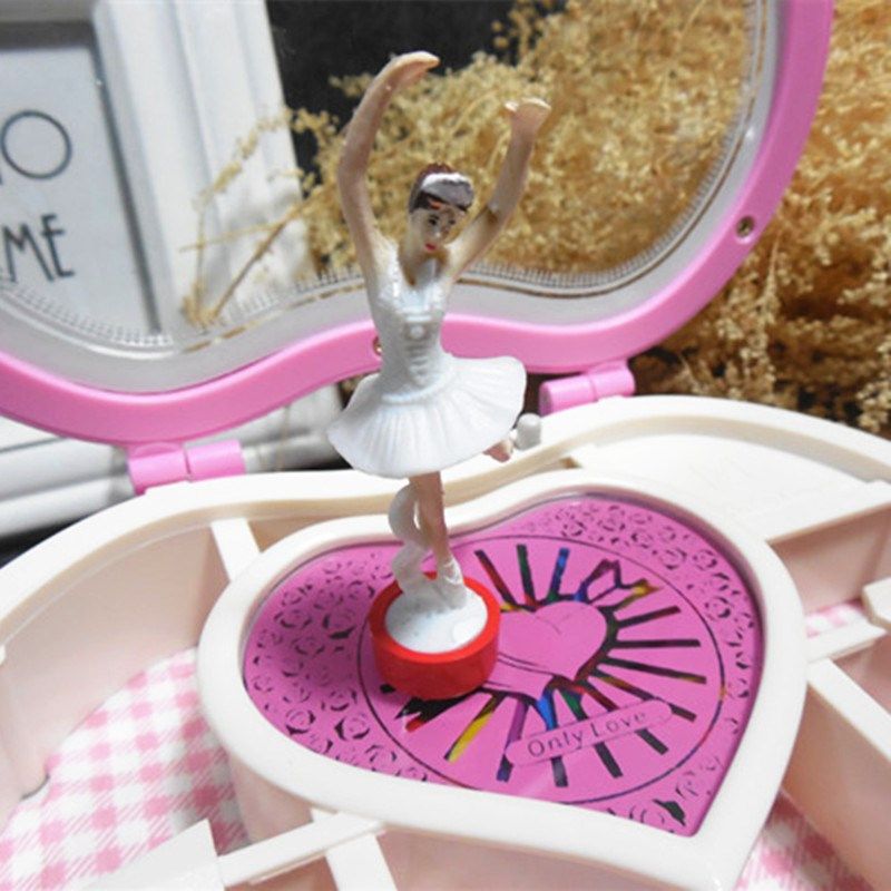 Rotating heart-shaped jewelry box cosmetic box music box clockwork chain music box dancing creative ballet girl