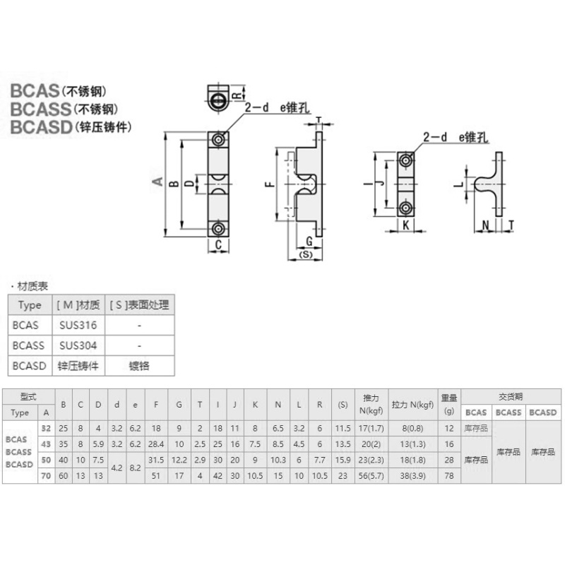 BCAS32 (316 stainless steel) BCAS43 (316 stainless steel) BCAS50 (316 stainless steel) BCAS70 (316 stainless steel) BCAS