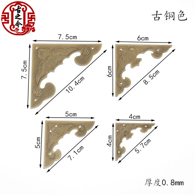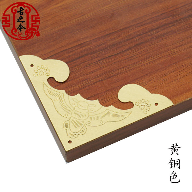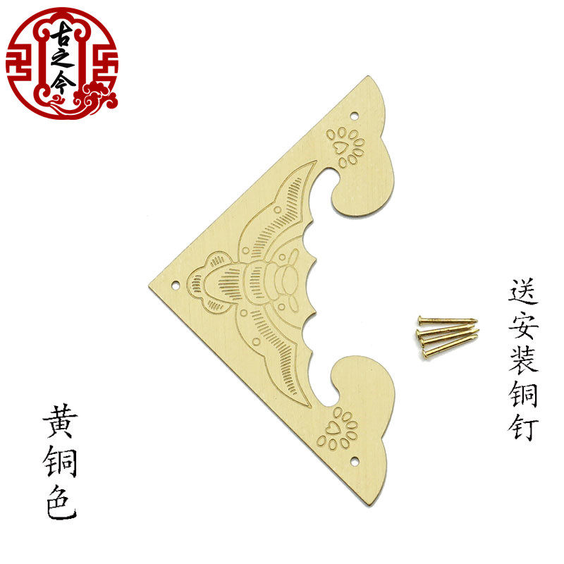 Chinese bat carved pure copper single-sided corner flower solid wooden cabinet door cupboard corner of wooden cabinet wooden box anti-collision corner code