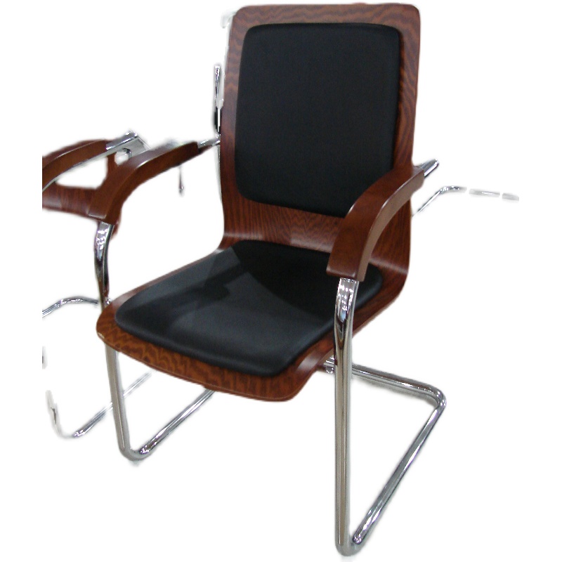 Black leather office chair conference chair solid wood chair with armrest oak office furniture simple modern non-rotating fixed