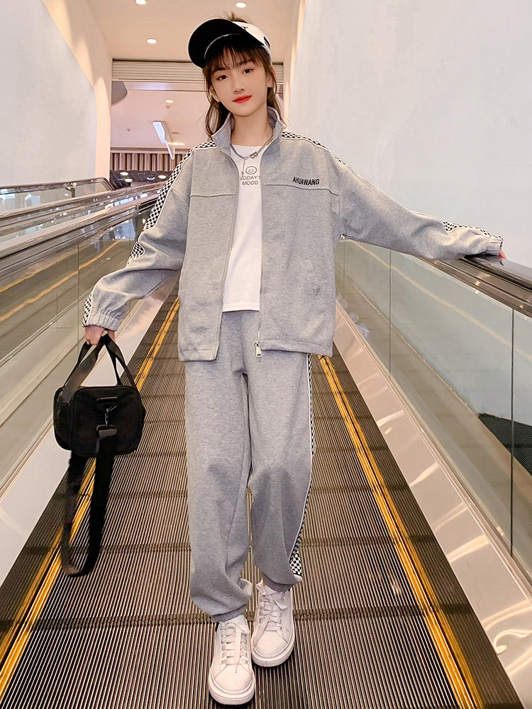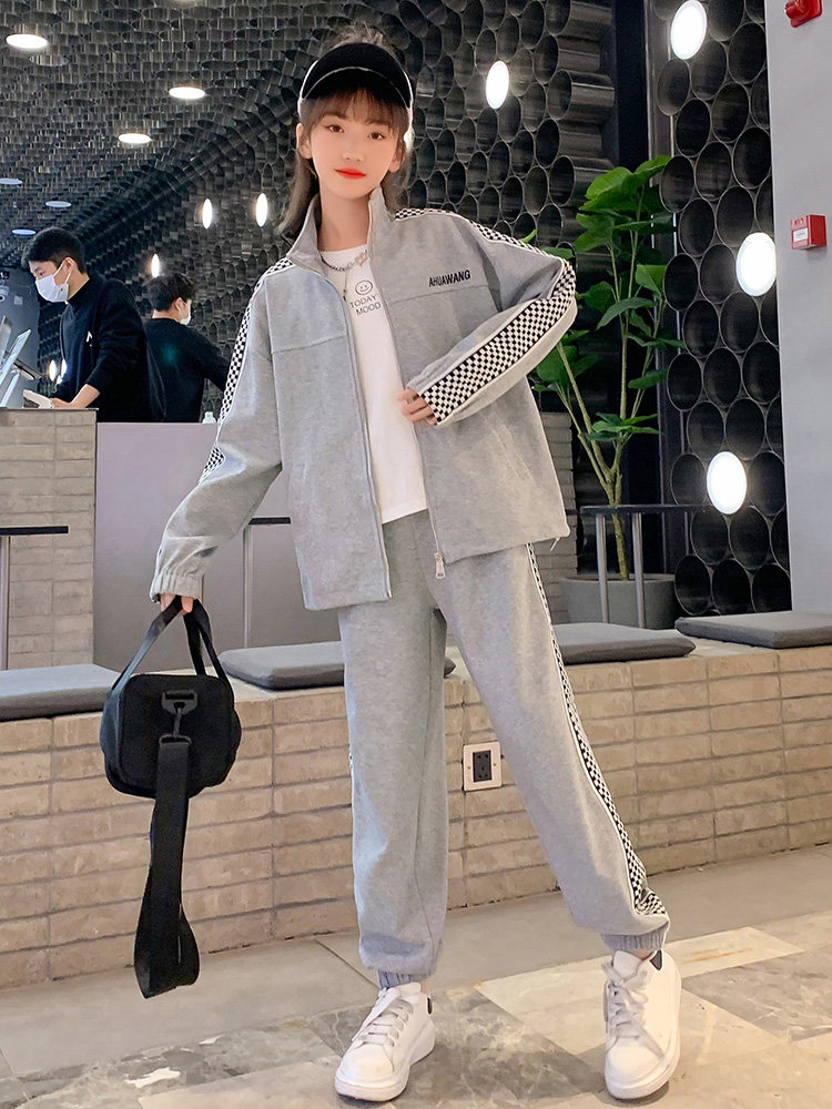 Girls' fashion suit spring and autumn 2022 new children's casual Korean version spring clothes big children's sweater two-piece suit foreign style