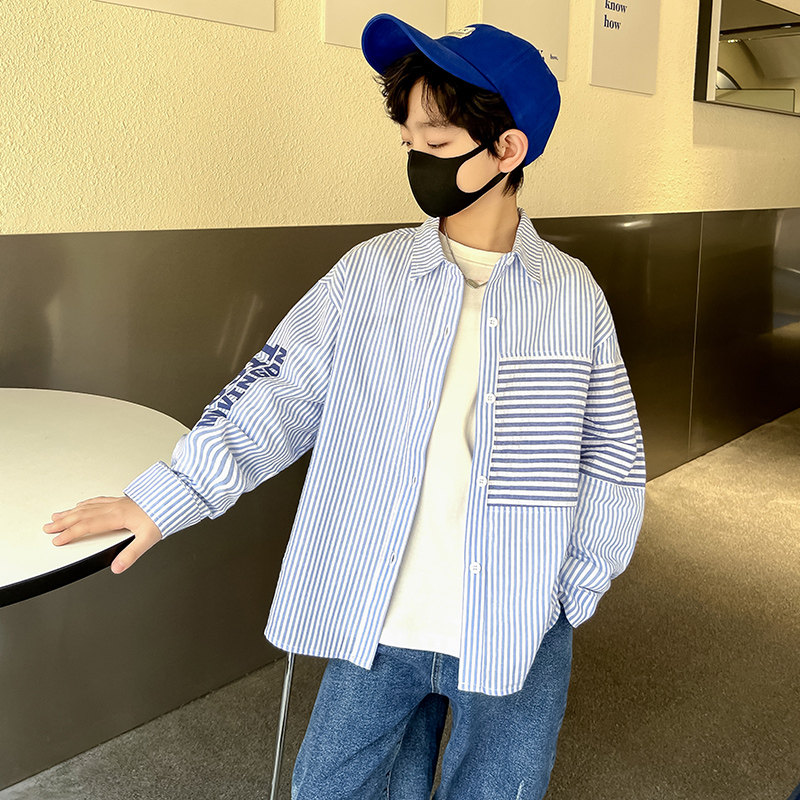 Striped Shirt Male Children Spring Dress Light Blue Summer Sunshine Shirts 2022 Spring Summer New Trendy Personality