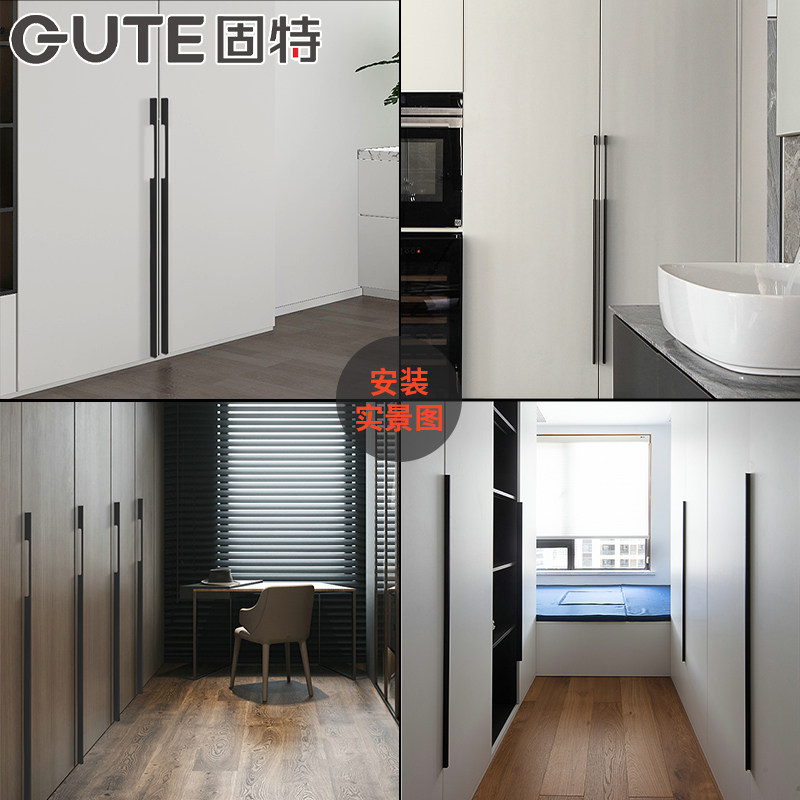 Solid lengthened handle clothes cabinet door overall cabinet modern minimalist solid black new drawer invisible American door handle