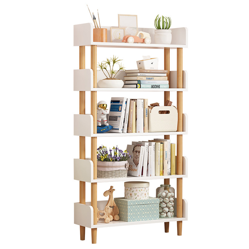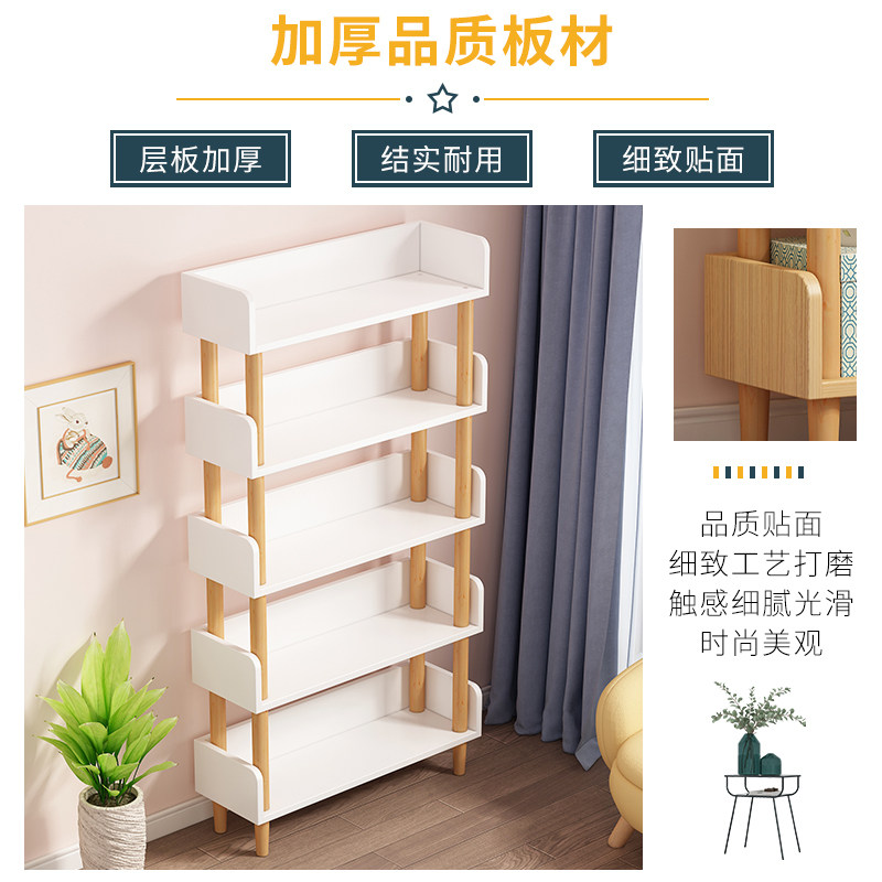 Bookshelf children's floor shelf vertical wall simple solid wood leg bookcase Nordic simple multi-layer storage shelf